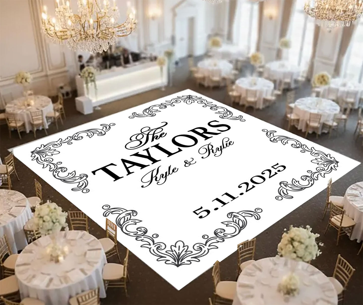 Create a stunning centerpiece for your event with a custom dance floor. Perfect for weddings, corporate events, and celebrations, our personalized dance floors can feature monograms, logos, colors, or custom designs to match your theme. A custom dance floor not only enhances your décor but also gives guests a beautiful space to dance and celebrate throughout the night.